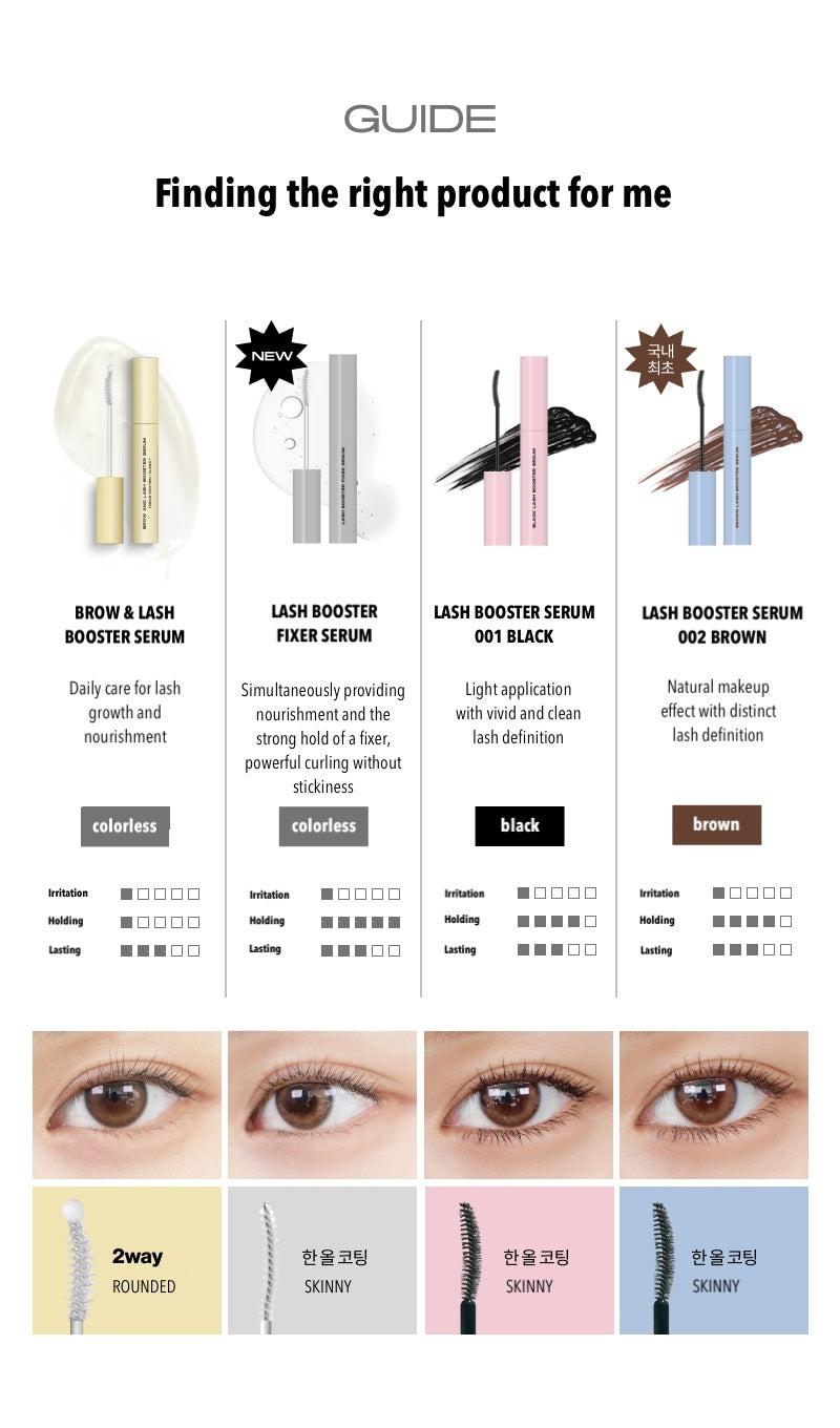 Q. How do I cleanse? A. The Entropy Serum Line is an easy washable type that can be washed off with lukewarm water. Gently rub with lukewarm water for a simple cleansing. However, if you used other makeup products, it is recommended to do a secondary cleansing with a remover. Q. Can I wear it to bed? A. Since the product is composed of nutrients that help maintain healthy eyelashes, it is safe to wear it to bed. However, due to the moisture-rich formula, it is recommended to be mindful of smudging due to tears. Q. It seems to smudge after applying, is there a specific way to apply it? A. Due to its moisture-rich formula, it is advisable to let the product dry slightly after application to ensure it adheres completely to the eyelashes and minimizes smudging. Q. What is the shelf life? A. It is recommended to use the product within 24 months before opening and within 6 months after opening. Q. Can I use it after getting an eyelash perm? A. Containing 'Miracle Mineral' which aids in strengthening and nourishing eyelashes, it is beneficial to use it after an eyelash perm. It provides nutrition to weakened lashes post-treatment, enhancing the makeup effect. Q. Can I use it with mascara? A. The 'Lash Booster Serum' includes a fixing function, so using it before applying mascara can help maintain the curling effect for a longer time.