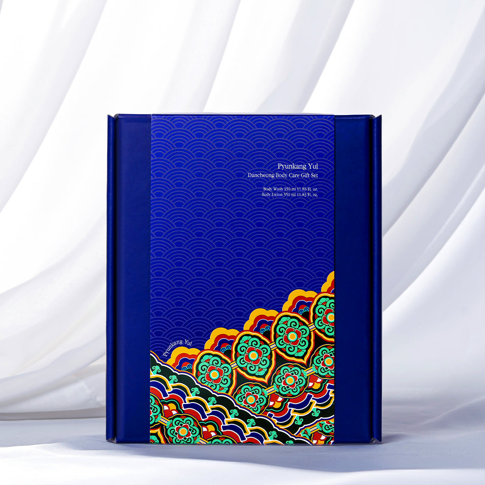 The beauty of tradition, reborn through the hues of Dancheong. Pyunkang Yul Dancheong Body Care Gift Set unites the symbolic elegance of Korea’s traditional Dancheong patterns with the serene fragrance of pure essential oils. This premium duo — Body Wash Dancheong and Body Lotion Dancheong — delivers a harmonious balance of cleansing and hydration, offering both skin comfort and sensory calm. Rooted in the artistry of Dancheong, which has preserved its vivid colors for centuries, this set embodies balance, harmony, and timeless beauty. Formulated with Acorus Root Extract, Resurrection Plant Extract, Five Types of Hyaluronic Acid, and Sea Buckthorn Fruit Extract, it gently purifies impurities, replenishes deep moisture, and restores vitality to the skin. Enriched with Jojoba Oil, Shea Butter, and other nourishing plant-based ingredients, the formulas leave the body feeling soft, luminous, and perfectly hydrated. The refreshing essential blend of Geranium, Herbal, and Orange notes provides a subtle yet lasting scent, wrapping the body in quiet serenity. A gift that carries both thoughtfulness and beauty — timeless, elegant, and crafted to comfort body and soul.