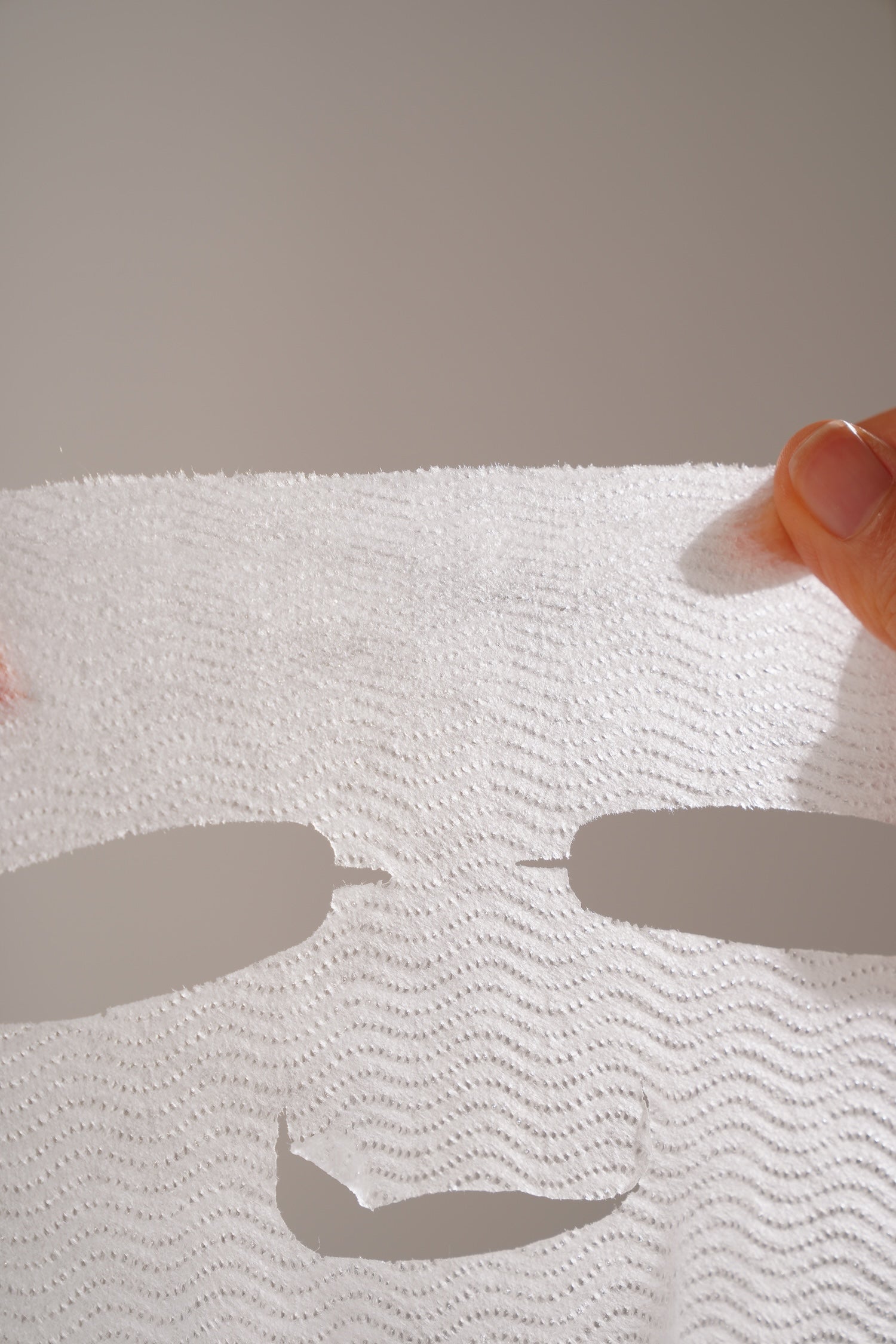 Wave patterned sheet mask that holds plenty amount of essence containing 12 layers of ultra-low molecular weight hyaluronic acid and deep seawater from Ulleung Island replenishes enough moisture into dehydrated skin.
