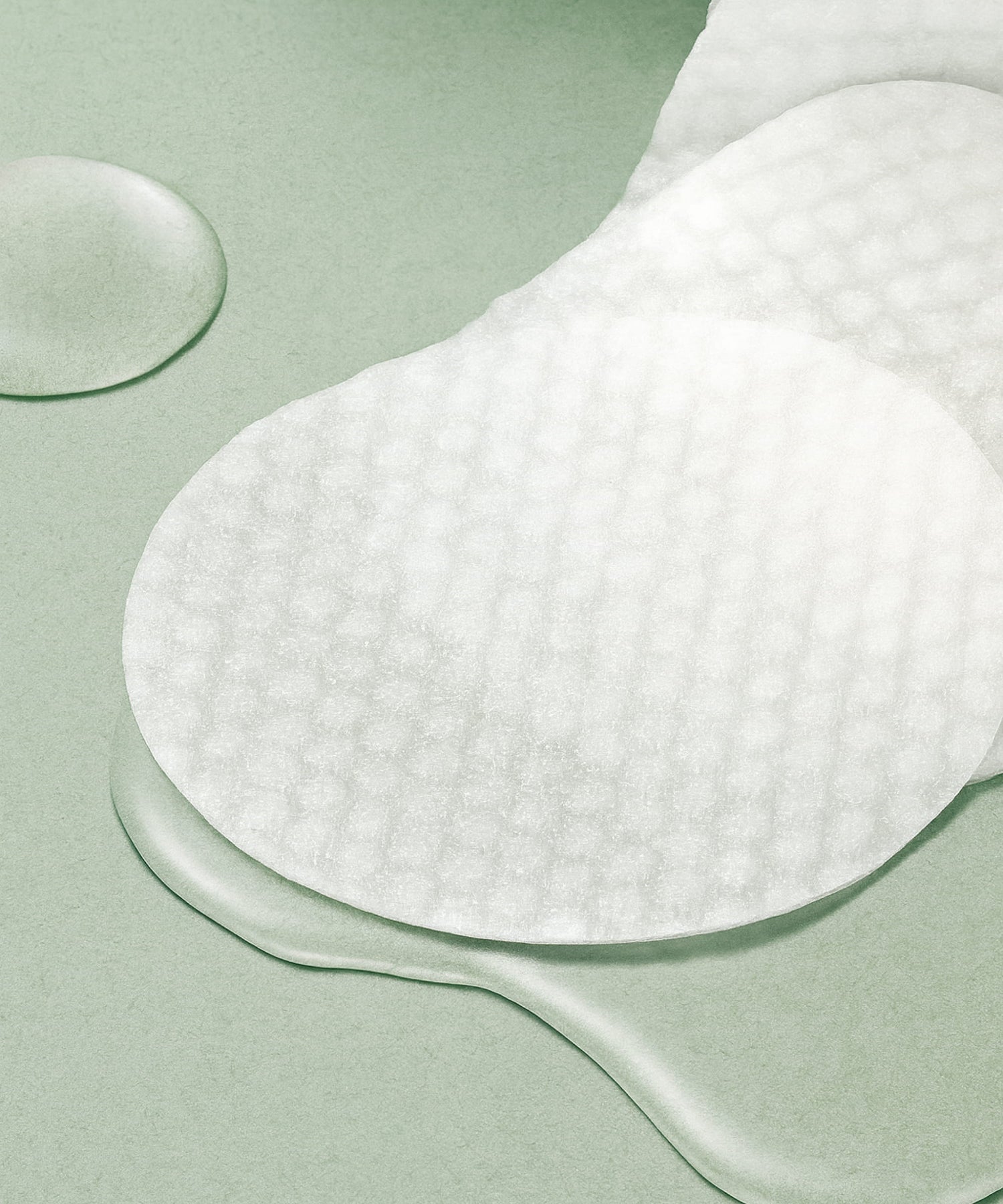1. Use the Embossed side to wipe the whole face thoroughly. 2. Use the Gauze side for intense exfoliation of the nose, neck, and ears. 3. Gently pat your face to absorb the remaining toner."