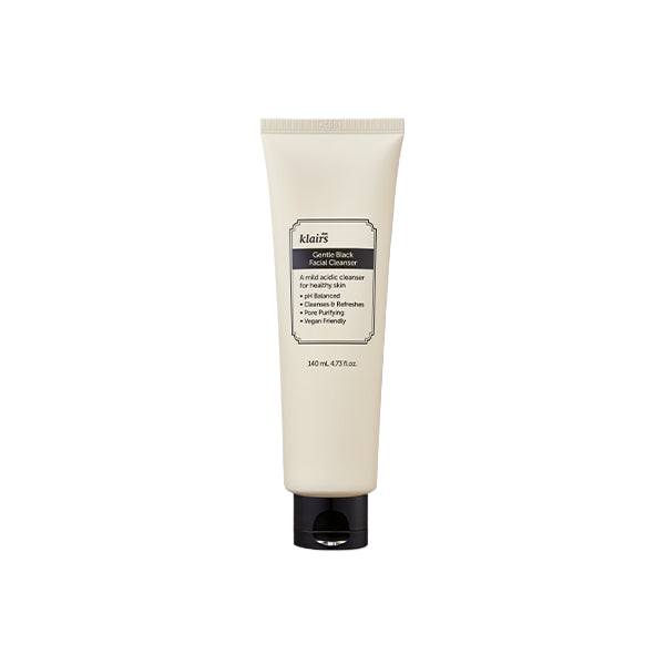 "140ml / All Skin Types / Made in Korea PAO: 12M ∣ EXP: 30M from MFD This low pH facial cleanser gently removes all impurities with a hydrating finish. With its creamy dense texture, it is soft and mild on the skin without causing irritation. A foam cleanser from Klairs Gentle Black Line, it consists of Black Complex - Tuber Melanosporum Extract (Truffle), Rubus Fruticosus (Blackberry) Fruit Extract, Nigella Sativa Seed Extract, Glycine Soja (Soybean) Seed Extract to enhance hydration and healthiness of the skin."