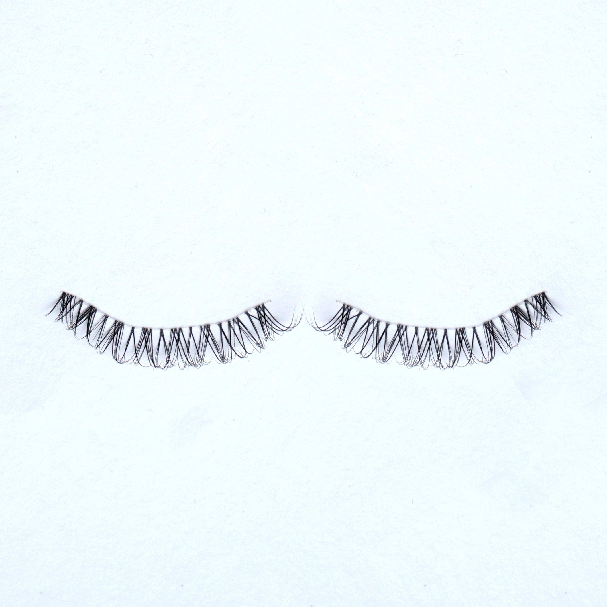 Faux mink vegan lashes with 0.08mm invisible thinnest band for knot-free, comfortable wear with 3D effect for wispy, natural look. Features 10-13mm length, 0.07 thickness, and cat eye shape perfect for everyday natural enhancement. Lightweight design ideal for active lifestyles and comfortable all-day wear.