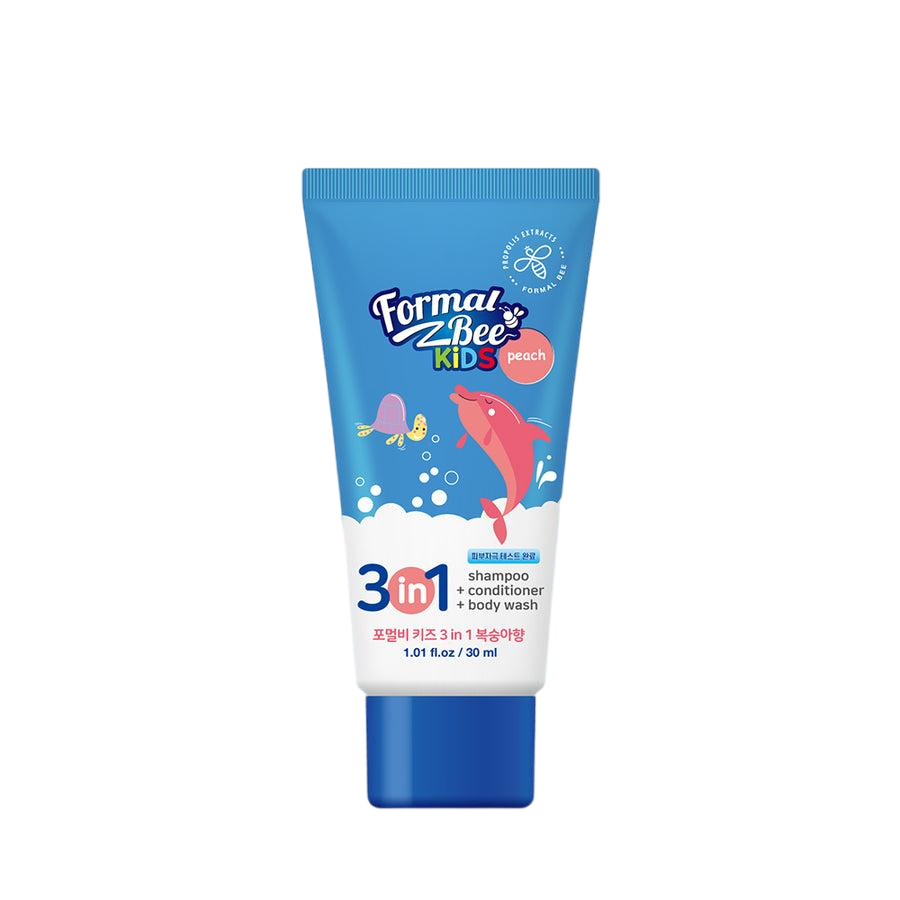 Formal Bee Kids 3in1 Peach, a head-to-toe all-in-one cleanser for kid, including shampoo, conditioner and body wash.