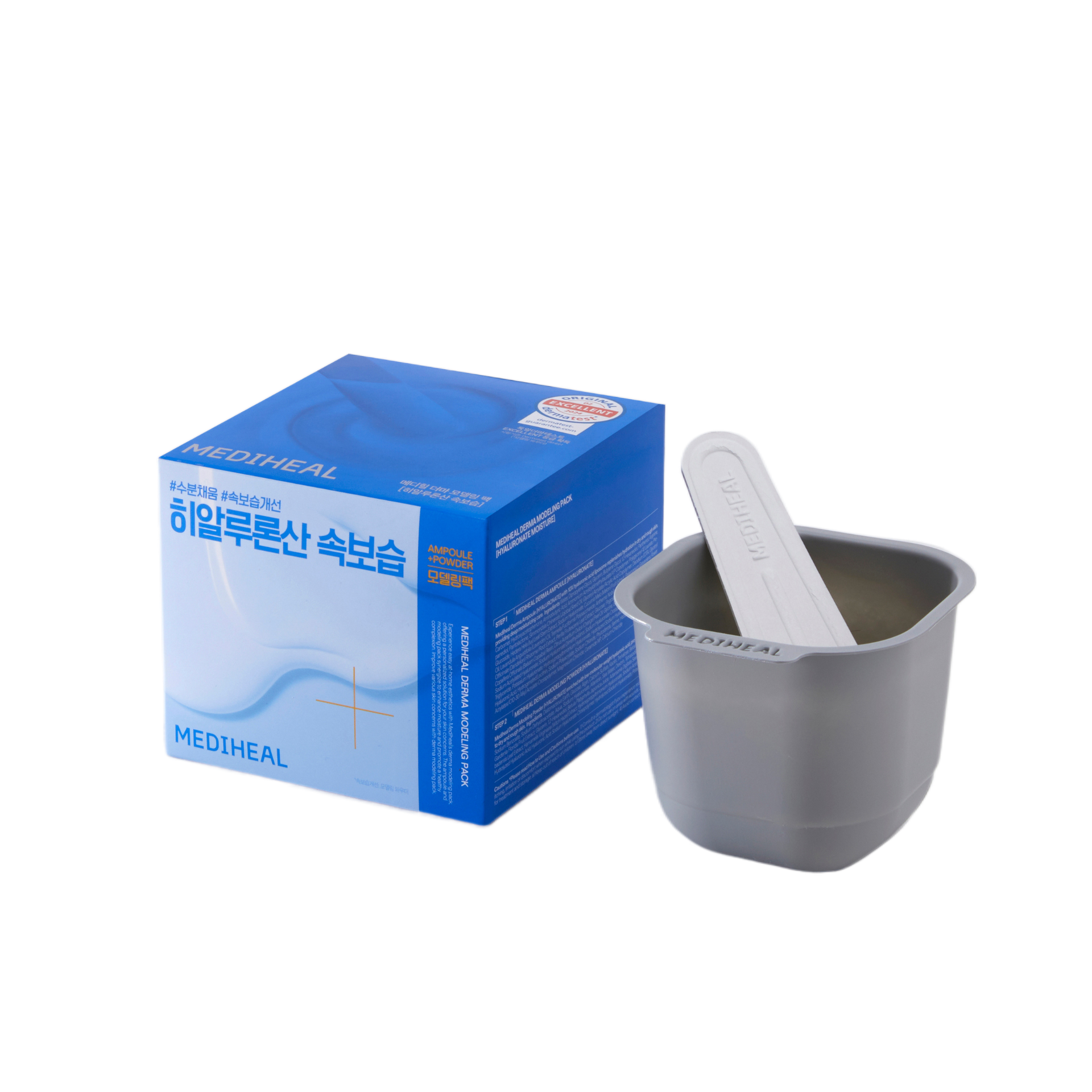 Mediheal Derma Ampoule [Hyaluronate] Water, Dipropylene Glycol, Glycerin, Butylene Glycol, 1,2-Hexanediol, Panthenol, Arginine, Carbomer, Hydroxyacetophenone, Aminobutyric Acid, Ammonium Acryloy/dimethyltaurate/VP Copolymer, Polyglyceryl-10 Laurate, Pro-panediol, Pantolactone, Simmondsia Chinensis (Jojoba) Seed Oil, Glyceryl Acrylate/Acrylic Acid Copolymer, Disodium EDTA, Glyceryl Glucoside, Hedera Helix (Ivy) Leaf/Stem Extract, Sodium Hyaluronate, Cucumis Melo (Melon) Fruit Extract, Pelargonium Graveolens Flower Oil, Lavandula Angustifolia (Lavender) Oil, Tremella Fuciformis Polysaccharide, Anthemis Nobilis Flower Oil, Pantothenic Acid, Taraxacum Officinale (Dandelion) Rhizome/Root Extract, Perilla Frutescens Leaf Extract, Glucose, Pogostemon Cablin Oil, Juniperus Mexicana Oil, Copaifera Officinalis (Balsam Copaiba) Resin, Citrus Aurantium Dulcis (Orange) Peel Oil, Glycine, Glutamic Acid, Dimethylsilanol Hyaluronate, Sodium Acetylated Hyaluronate, Sodium Hyaluronate Dimethy/silanol, Sodium Hyaluronate Crosspolymer, Aspartic Acid, Caprylic/Capric Triglyceride, Potassium Hyaluronate, Hydroxypropyltrimonium Hyaluronate, Hydrolyzed Sodium Hyaluronate, Hydrolyzed Hyaluronic Acid, Hyaluronic Acid, Hydrogenated Lecithin, Sodium Polyacrylate, Sodium Chloride, Phytosterols, Serine, Histidine, Alanine, Threonine, Proline, Acrylates/C10-30 Alkyl Acrylate Crosspolymer, Magnesium Chloride, Ceramide NP, Calcium Chloride Mediheal Derma Modeling Powder [Hyaluronate] Diatomaceous Earth, Glucose, Algin, Calcium Sulfate, Kaolin, Trehalose, Betaine, Xylitol, Panthenol, Sodium Benzoate, Sodium Dehydroacetate, Aqua, Sodium Hyaluronate, Allantoin, Sea Water, Dextrin, Tetrasodium Pyrophosphate, Gardenia Florida Fruit Extract, Glycerin, 1,2-Hexanediol, Betula Platyphylla Japonica Juice, Adansonia Digitata Seed Extract, Aloe Bar-badensis Leaf Extract, Hamamelis Virginiana (Witch Hazel) Extract, Hydroxypropyitrimonium Hyaluronate, Sodium Acetylated Hyaluronate, Hydrolyzed Hyaluronic Acid, Hyaluronic Acid, Sodium Hyaluronate Crosspolymer, Hydrolyzed Sodium Hyaluronate, Potassium Hyaluronate
