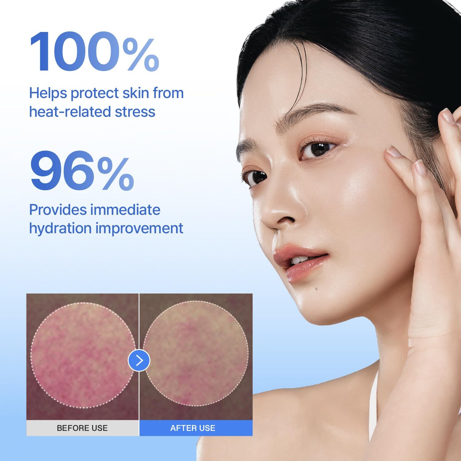 • • Product Key Point 1: Clinically tested through human application studies, the formula visibly reduces skin temperature while increasing hydration levels. Its lightweight, moisture-rich texture releases a burst of hydration, absorbs quickly without stickiness, and finishes fresh. Designed with a low-irritation formula, it is ideal for daily use, helping calm heat-induced irritation, reduce morning puffiness, and provide balanced hydration throughout the day.