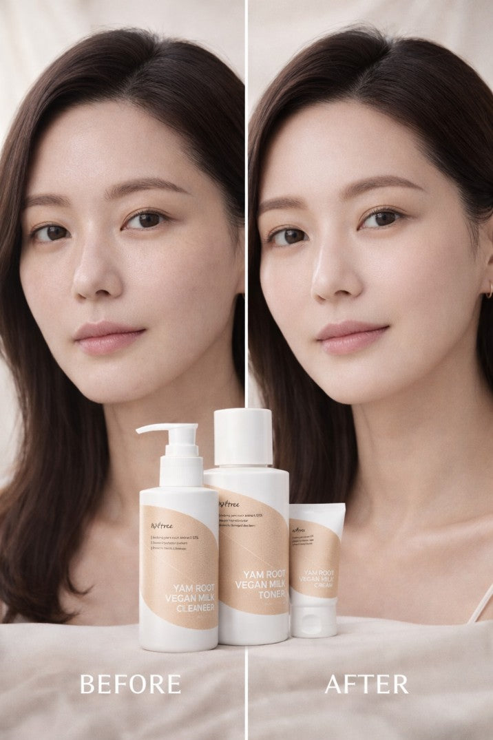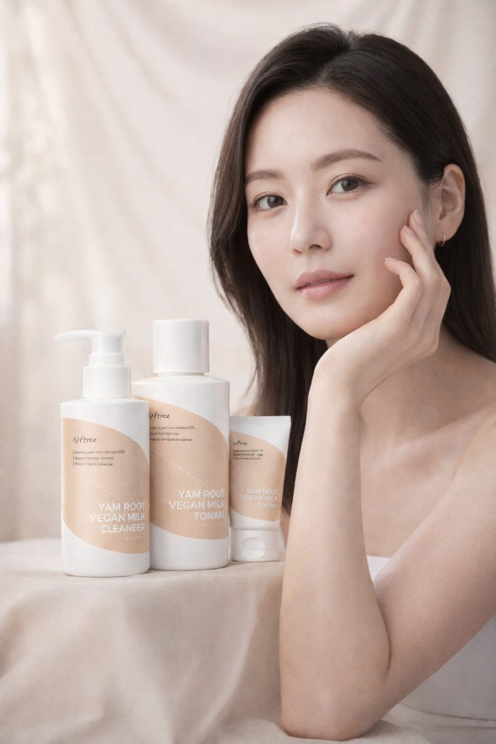 The Isntree Yam Root Vegan Milk Barrier Hydration Routine is a gentle, comfort-focused skincare set designed to cleanse without stripping, replenish hydration, and support a healthier-feeling skin barrier. With nourishing yam root-based formulas and a soft milky texture profile throughout the routine, this bundle is especially well suited to skin that feels dry, dehydrated, tight, or easily unsettled.