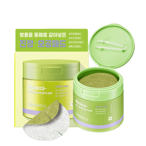 "Dongkook Pahrma’s Madeca Real Green Pore Essence is fully soaked in the pads for handy effective skin care step for pore problems. Madeca Real Green Pore Pad delivers enhanced pore treatment with minimized irritation. This pad is ideal for those who want to address excess sebum and dead cell problems despite constant skincare, enlarged pores and rough skin texture, easily irritated sensitive skin. This pad also offer handy all-round pore treatment and quick daily soothing remedy."
