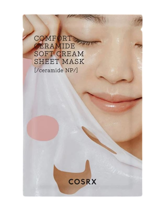 • A sheet mask packed with Balancium Comfort Ceramide Soft Cream to soothe and replenish skin.