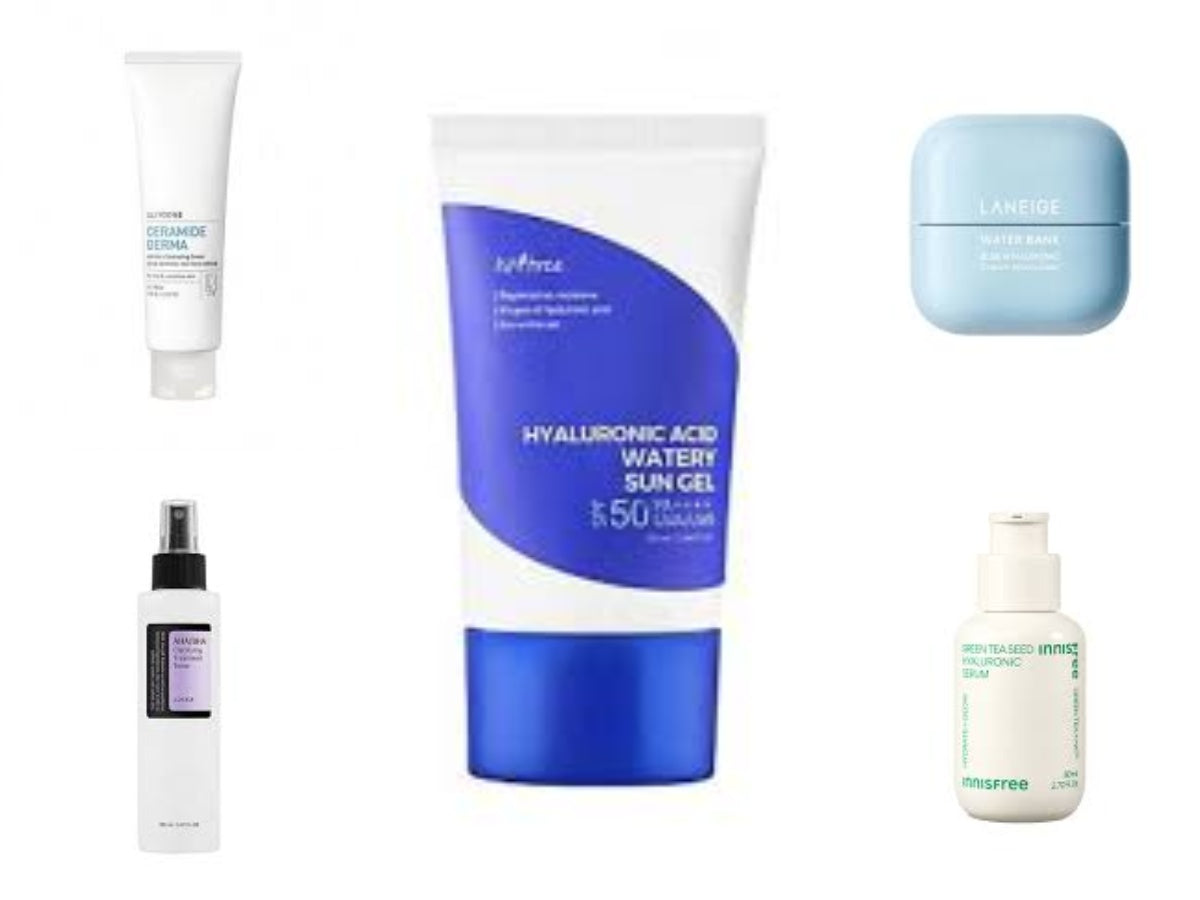 Korean Skincare Routine for Large Pores and Uneven Texture Treatment in Age 20's for Tight and Dry Skin.Transform your skincare routine with our Korean Skincare Treatment for Large Pores and Uneven Texture. Cleanse with [illiyoon] Ceramide Derma Amino Cleansing Foam. Tone with [Cosrx] AHA/BHA Clarifying Toner. Hydrate with [Innisfree] Green Tea Seed Hyaluronic Serum and [Laneige] Water Bank Blue Hyaluronic Cream. Protect with [Isntree] Hyaluronic Acid Watery Sun Gel. Say hello to tighter, smoother, and more radiant skin in your 20's.