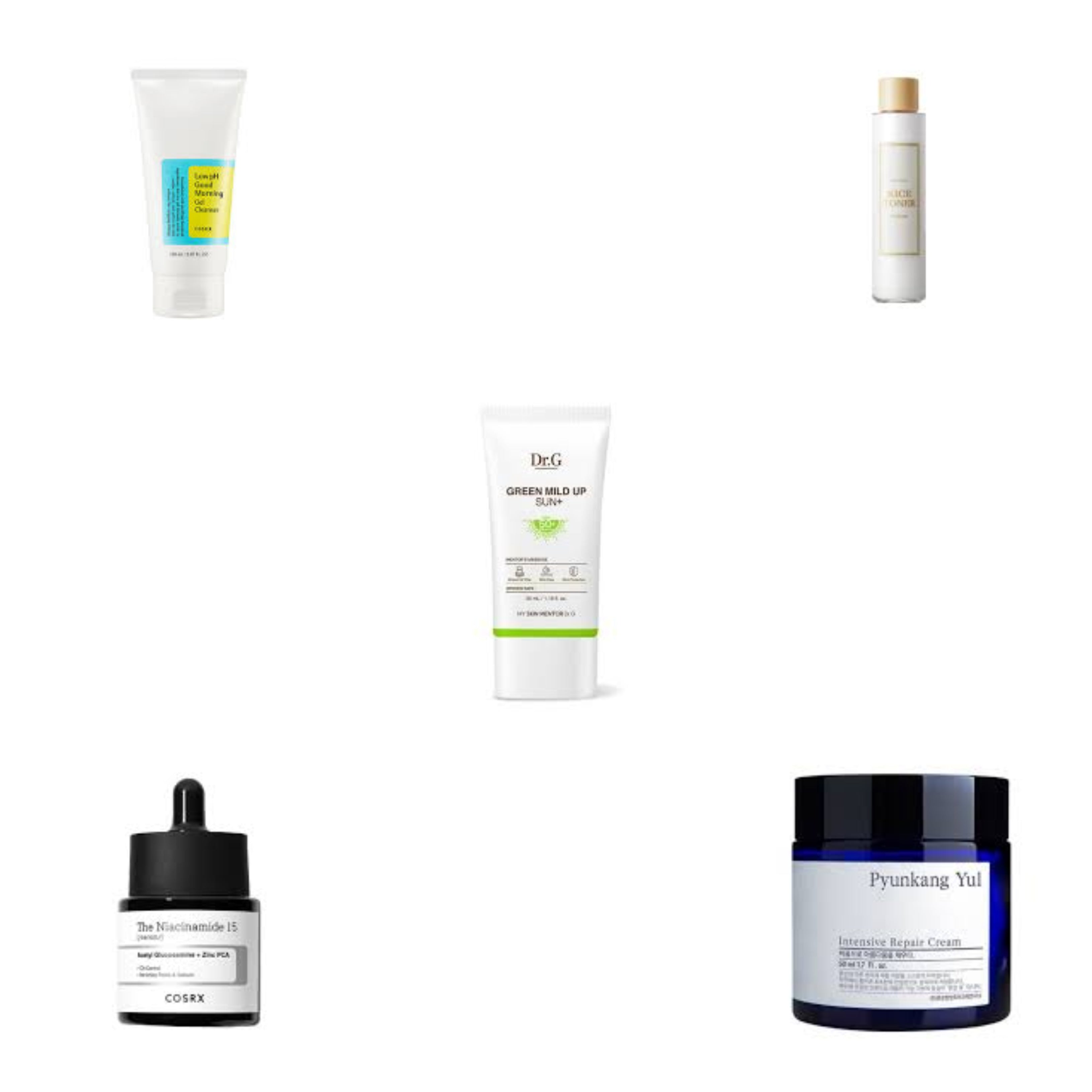 Improve your sensitive skin's texture and minimize pores with this comprehensive Korean skincare treatment. The gentle [Cosrx] Low pH Good Morning Gel Cleanser will cleanse without stripping, followed by [ImFrom] Rice Toner to hydrate and brighten. [Cosrx] The Niacinamide 15 Serum targets uneven skin tone and [PyunkangYul] Moisture Cream provides long-lasting moisture. Don't forget to protect with [Dr.G] Green Mild Up Sun SPF 50+/PA++++.