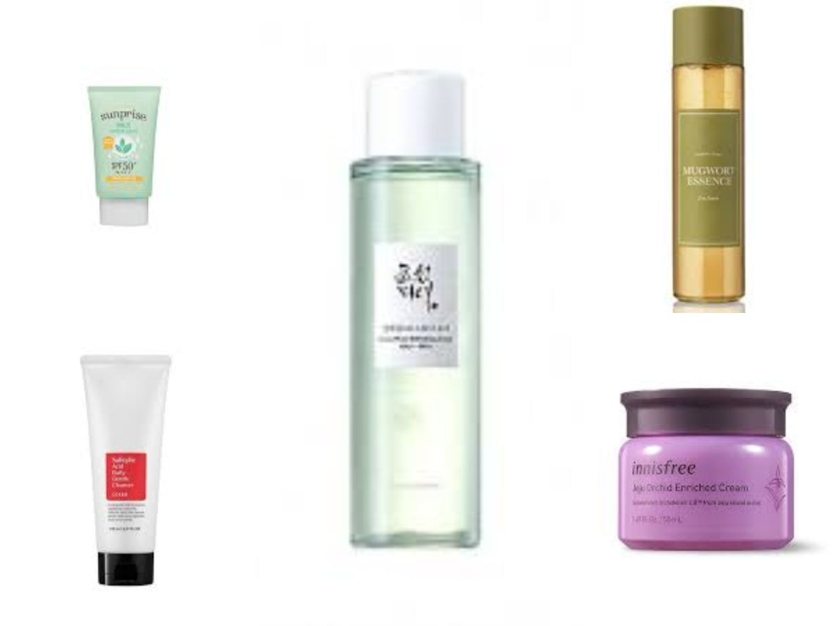 Korean Skincare Routine for Oily Skin and Shine Treatment in Age 20's for Tight and Dry Skin. Achieve clear, balanced, and hydrated skin with our Korean Skincare Treatment. The [Cosrx] Salicylic Acid Cleanser gently exfoliates, while [Beauty of Joseon] Toner and [ImFrom] Mugwort Essence clarify and brighten. Lock in moisture with [Innisfree] Orchid Cream, and protect from UV rays with [Etude House] Sunscreen. Perfect for oily, tight, and dry skin in your 20's.