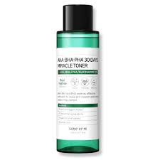 Some By Mi AHA-BHA-PHA 30 Days Miracle Toner is a multi-functional toner that combines three types of chemical exfoliants: AHA (Glycolic Acid), BHA (Salicylic Acid), and PHA (Gluconolactone). These ingredients work together to gently exfoliate the skin, remove dead skin cells, and unclog pores. The toner also contains Tea Tree extract, which has anti-inflammatory and antibacterial properties to help calm and soothe irritated skin. It's suitable for acne-prone and troubled skin, promoting clearer and smoother skin texture over time.