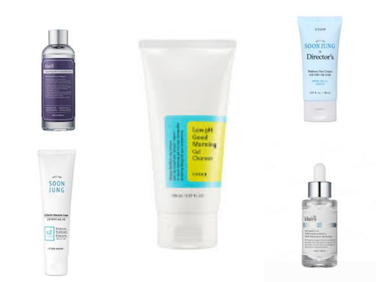 Revitalize your skin and reduce signs of aging with our Korean Skincare Treatment. Experience the gentle cleansing of Cosrx's Low pH Good Morning Gel Cleanser and the nourishing moisture of Klairs' Supple Preparation Unscented Toner. Enrich your skin with Klairs' Freshly Juiced Vitamin Drop and protect it from harmful UV rays with Etude House's Soonjung Director's Moisture Sun Cream.