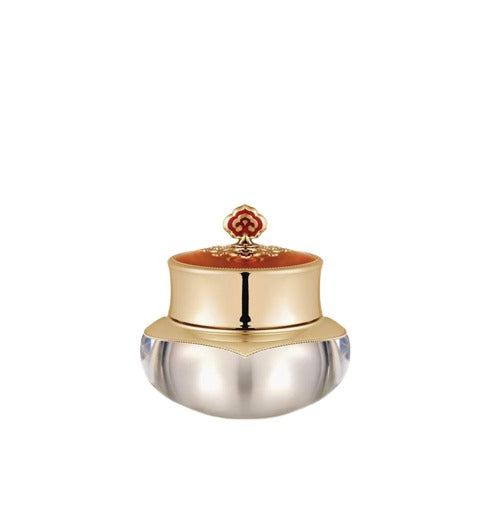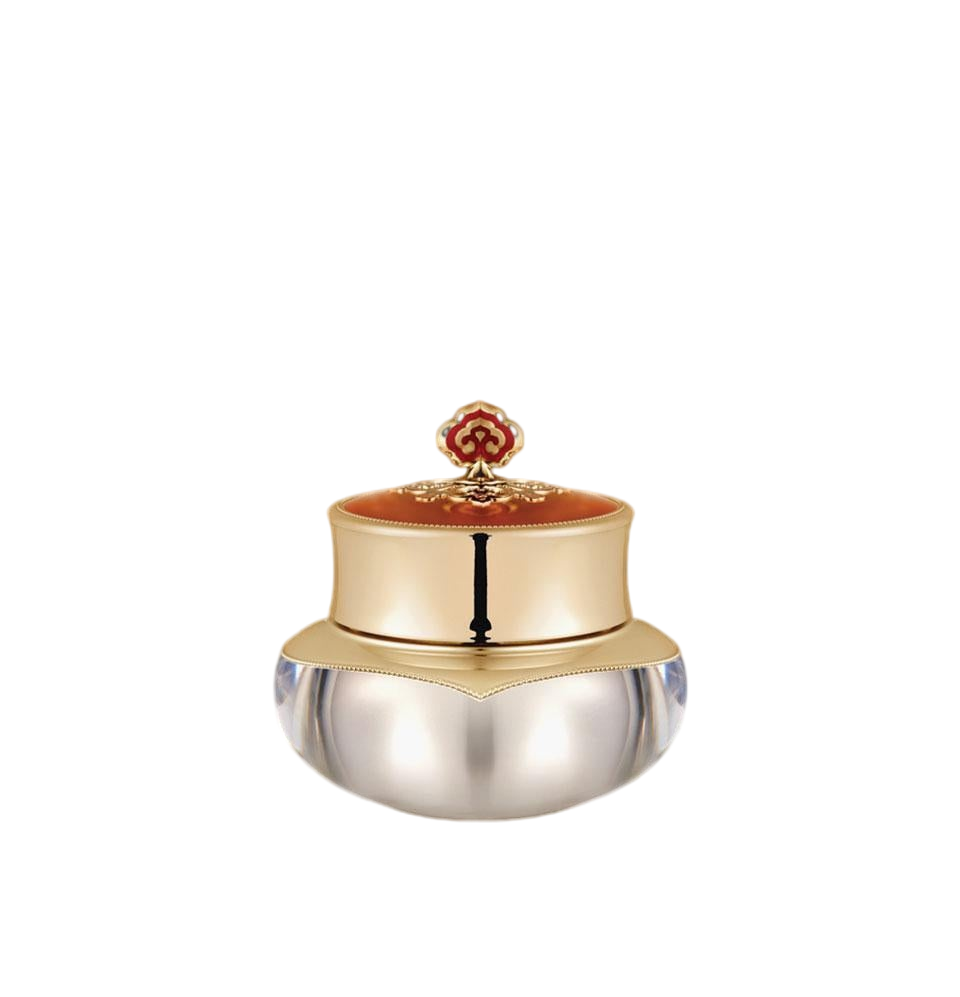 Highly concentrated balm-textured eye cream with Wild Ginseng and Gold for skin tightening and firming around delicate eye area. Features comprehensive Korean herbal complex including Phellinus Linteus Extract, Oyster Shell Extract, and multiple traditional botanicals for rejuvenation. Rich formula with Ceramide NP and premium ingredients provides intensive care for eye area concerns with luxurious texture.