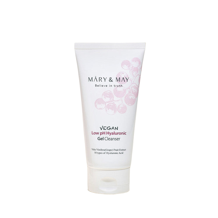 Mary&May Vegan pH Hyaluronic Gel to Foam Cleanser, Gentle and effective pH Low Gel type cleanser day and night, removing impurities while strengthening your skin barrier 1. Low pH balanced formula protect your skin barrier, this cleanser helps balance your skin and protect it from trouble-causing irritants. 2. Daily Mild Cleanser with no stripping. While refining the skin texture, the cleanser will help cleanse with no stripping. Great for all skin types, wake up to a firmer-looking skin while letting it rest clean during the night. 3. 10,000ppm of Grape extract and Hyaluronic acid strengthen luminous and clean skin 4. Rich bubble gently removes impurities and dirts 5. Vegan certification completed All ingredients EWG green grade (excluding fragrance) Skin irritation test completed 16FREE Hazardous ingredients, Cruelty free, Eco-friendly packaging printed with soybean oil ink