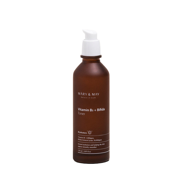 Mary&May Vitamin B5 + Bifida Toner, 30,000ppm Bifida fermentation with 1,000ppm Vitamin B5 to soothe sensitive skin and deep moisturization 4.05 fl oz 1. A toner packed with vitamin B5 and bifida ferment lysate to deeply hydrate the skin while strengthening skin barrier, revealing a vibrant and radiant complexion. 2. Bifida ferment lysate replenishes nourishment for healthy glowy skin, strengthens the barrier to help skin regeneration and soften dead skin cells for a smooth complexion. 3. Rich in effective humectant vitamin B5 to moisturize and calm the skin. 4. Fast-absorbing texture that leaves the skin feeling refreshed and moisturized. 5. Formulated only with EWG green grade ingredients.