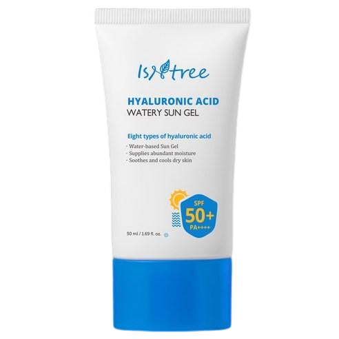 • [Isntree] Hyaluronic Acid Watery Sun Gel 50ml: This sunscreen is lightweight and non-greasy, and it provides broad-spectrum SPF 50 protection. Hyaluronic acid is a humectant, which means that it helps to attract and retain moisture in the skin.