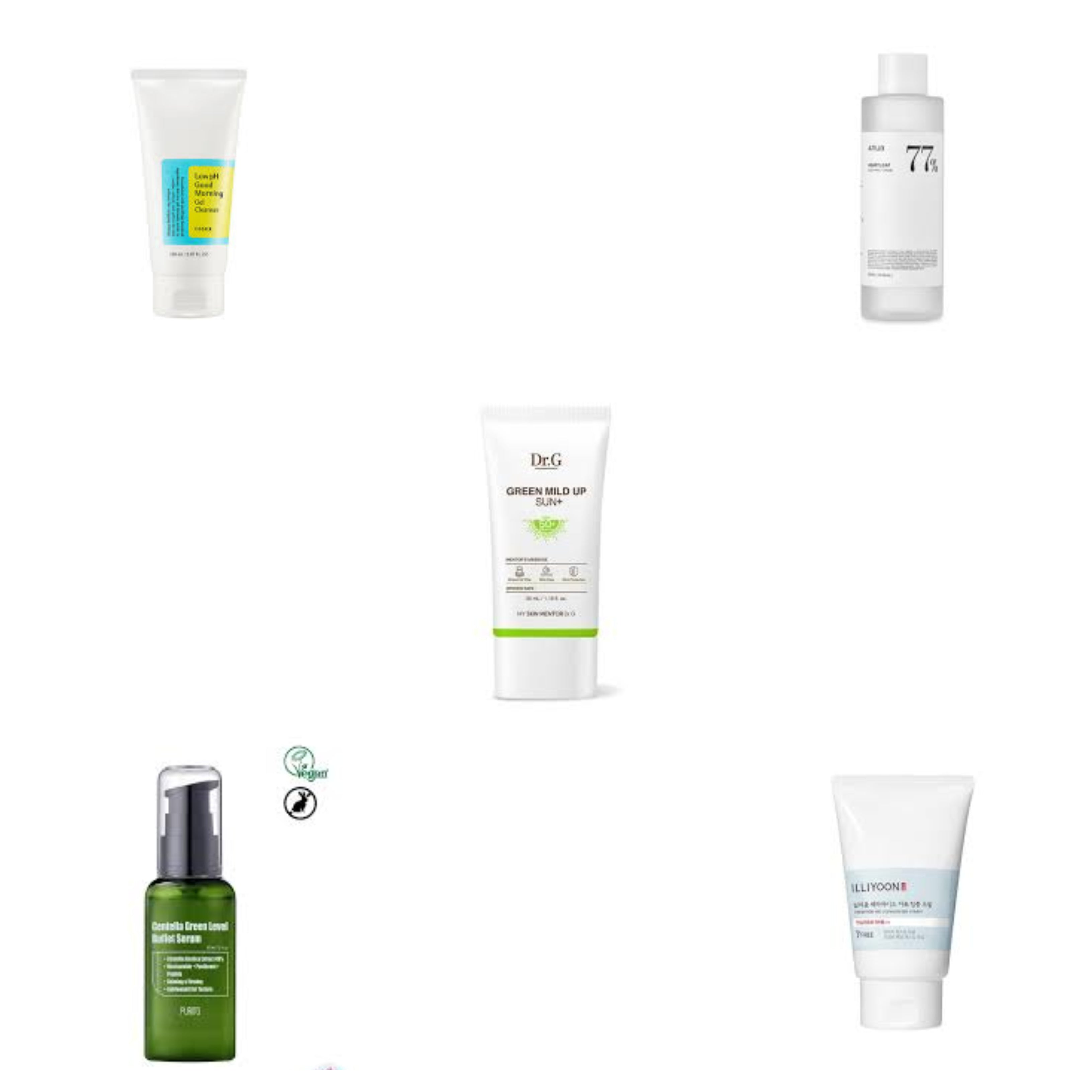 This Korean Skincare Treatment includes Cosrx Gel Cleanser, Anua Soothing Toner, PURITO Buffet Serum, illiyoon Concentrate Cream, and Dr.G Sunscreen, perfect for sensitive skin with Rosacea in the Age 50s. Formulated with low pH, centella, heartleaf, and ceramide, this set effectively soothes and protects against signs of aging with SPF 50+ and PA++++.