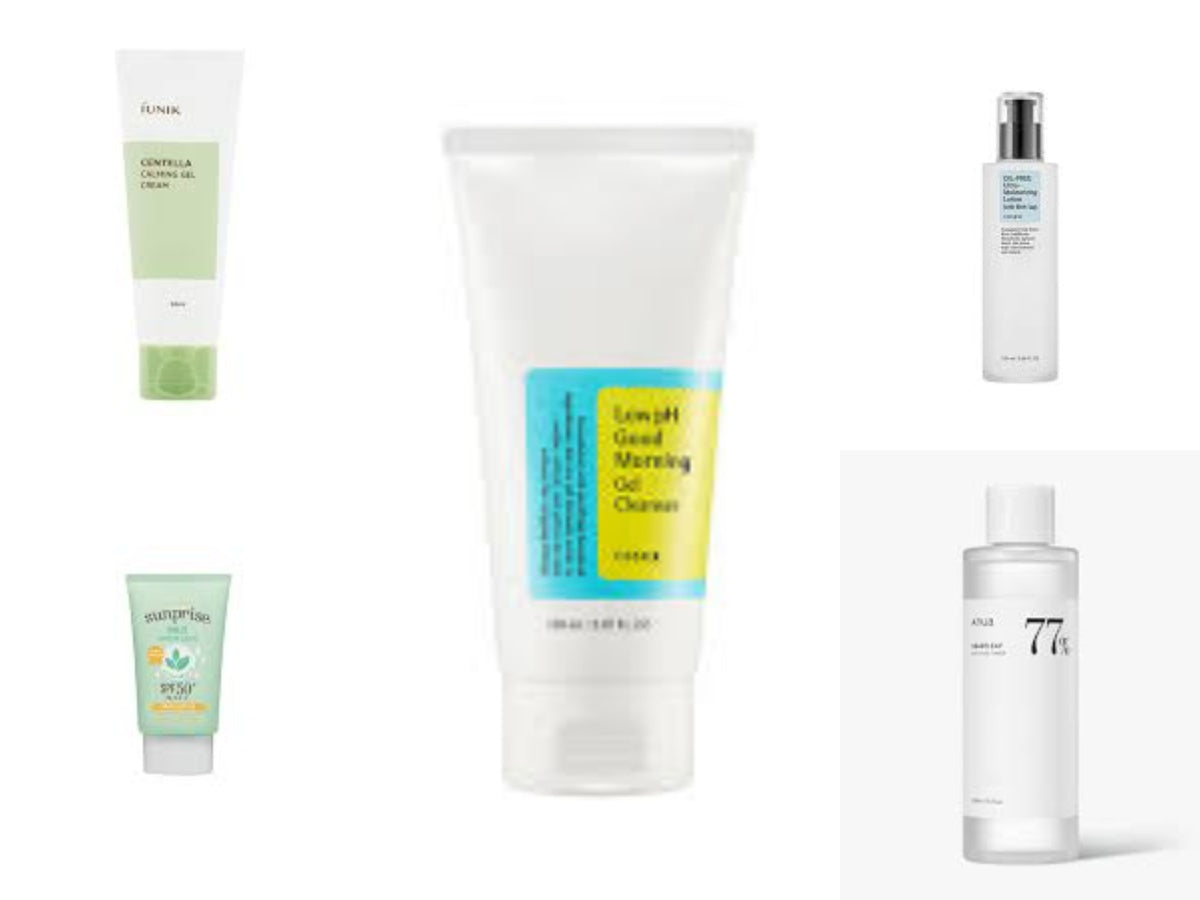 Korean Skincare Routine for Sensitive Skin and Shine Treatment in Age 20's for Sensitive Skin.Revitalize and protect your sensitive skin with this Korean Skincare Treatment. Experience a gentle cleanse with [Cosrx] Low pH Good Morning Gel Cleanser, followed by soothing hydration from [Anua] Heartleaf 77% Soothing Toner and [iUNIK] Centella Calming Gel Cream. Finish with [Cosrx] Oil-Free Ultra-Moisturizing Lotion and [Etude House] Sunprise Mild Watery Light Sunscreen for a radiant, shine-free look in your 20's.