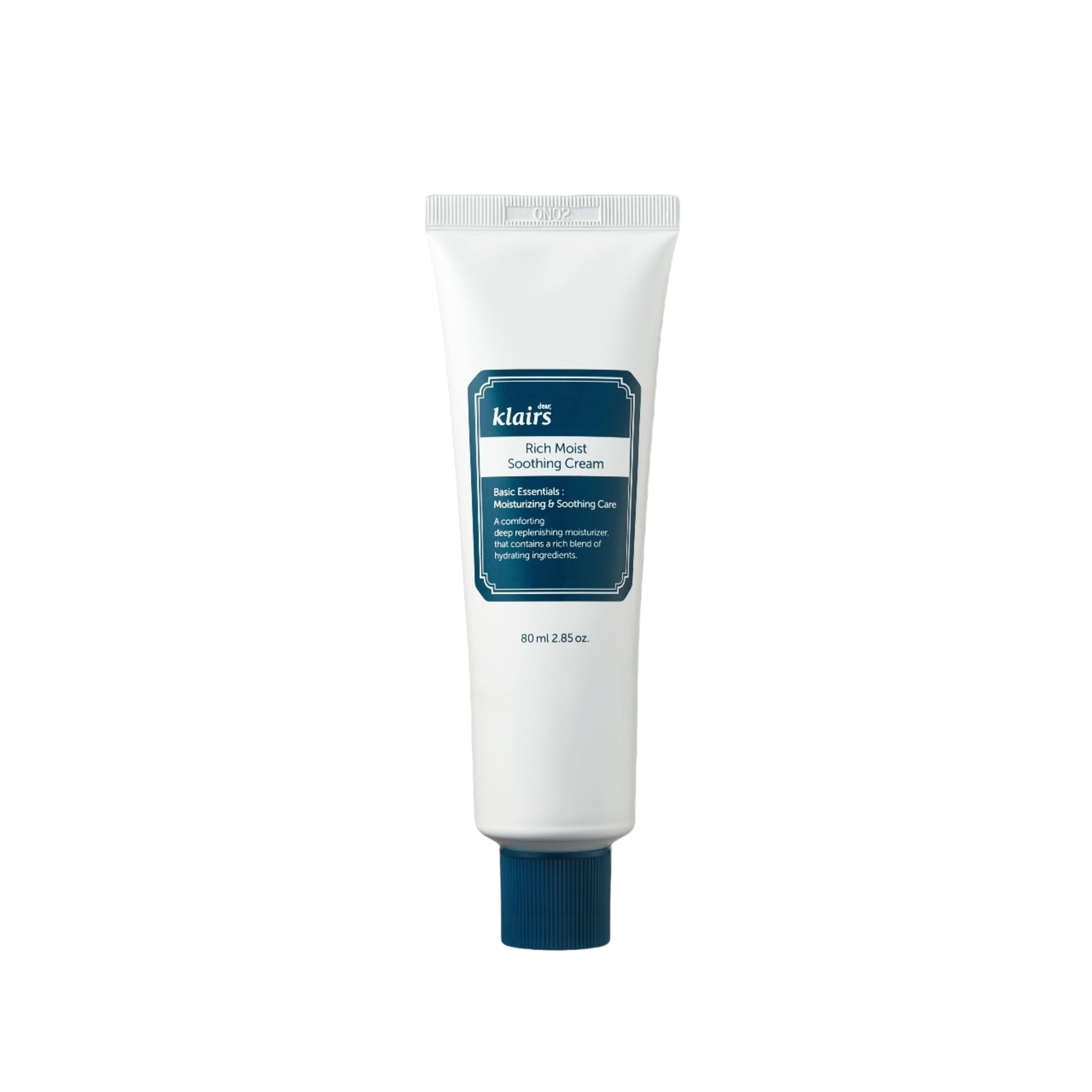 Klairs] Rich Moist Soothing Cream (80ml) is a deeply hydrating cream designed to provide intense moisture and soothing relief to dry and sensitive skin. Formulated with shea butter, ceramides, and lipidure, this cream helps to strengthen the skin's barrier, preventing moisture loss and improving resilience. It also contains beta-glucan and jojoba seed oil to calm inflammation and nourish the skin.