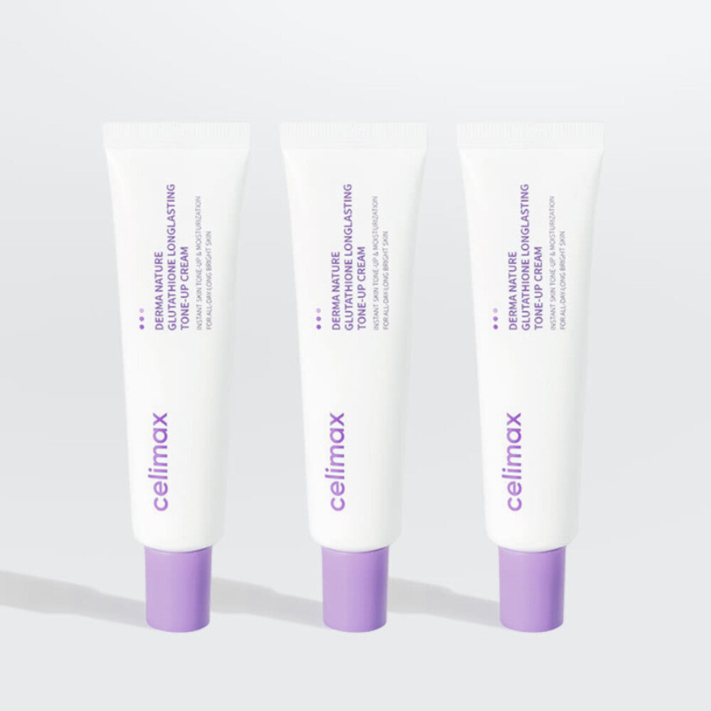 Tone-up cream with niacinamide and glutathione to naturally brighten and even skin tone.