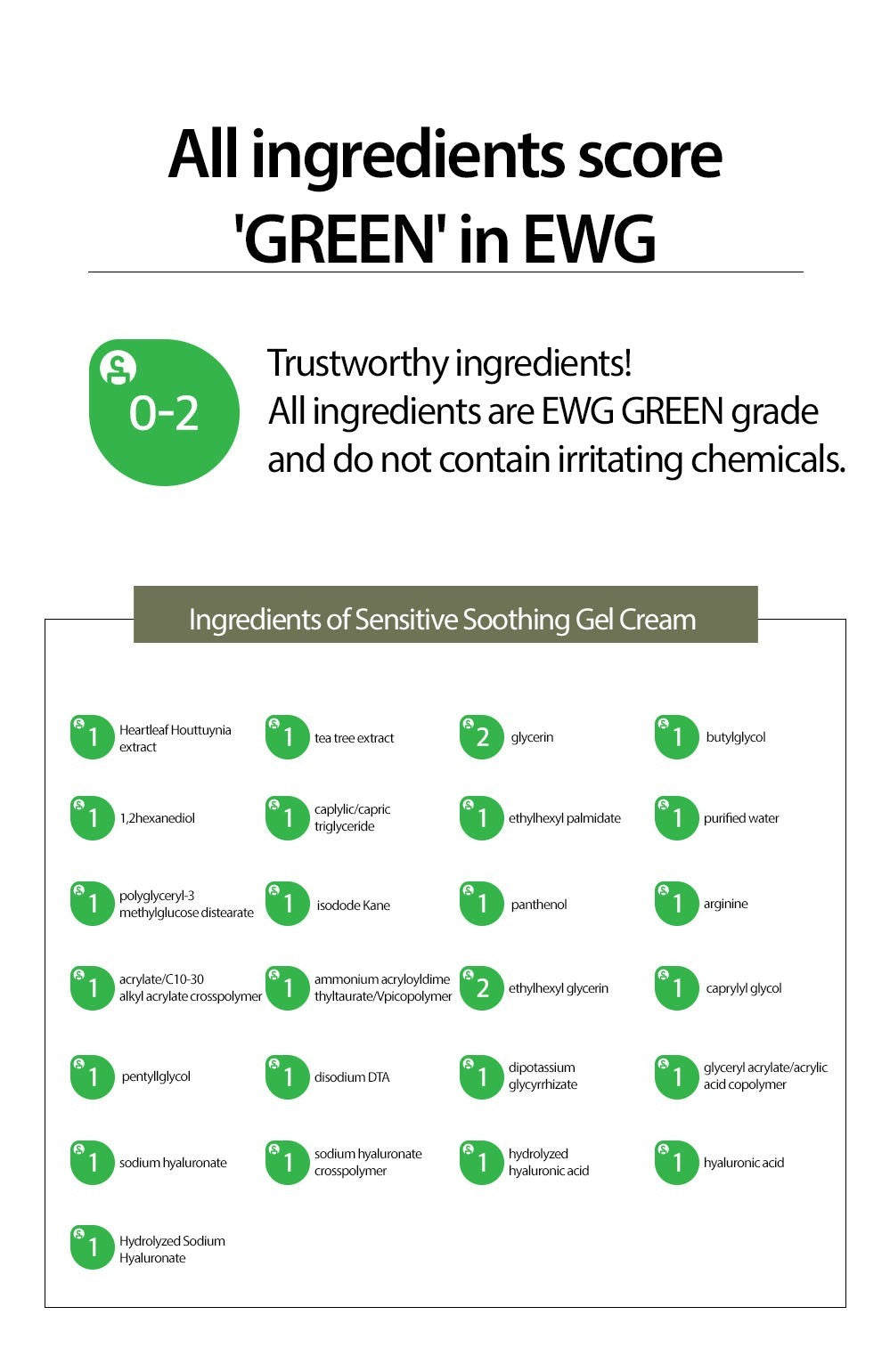 "Houttuynia Cordata Extract, Melaleuca Alternifolia (Tea Tree) Extract, Glycerin, Butylene Glycol, 1,2-Hexanediol, Caprylic/Capric Triglyceride, Ethylhexyl Palmitate, Water, Polyglyceryl-3 Methylglucose Distearate, Isododecane, Panthenol, Arginine, Carbomer, Ammonium Acryloyldimethyltaurate/VP Copolymer, Ethylhexylglycerin, Caprylyl Glycol, Pentylene Glycol, Disodium EDTA, Dipotassium Glycyrrhizate, Glyceryl Acrylate/Acrylic Acid Copolymer, Sodium Hyaluronate(2,200,000D), Sodium hyaluronate Crosspolymer, Hydrolyzed Hyaluronic Acid, Hyaluronic Acid, Sodium Hyaluronate(4,000D), Hydrolyzed Sodium Hyaluronate"
