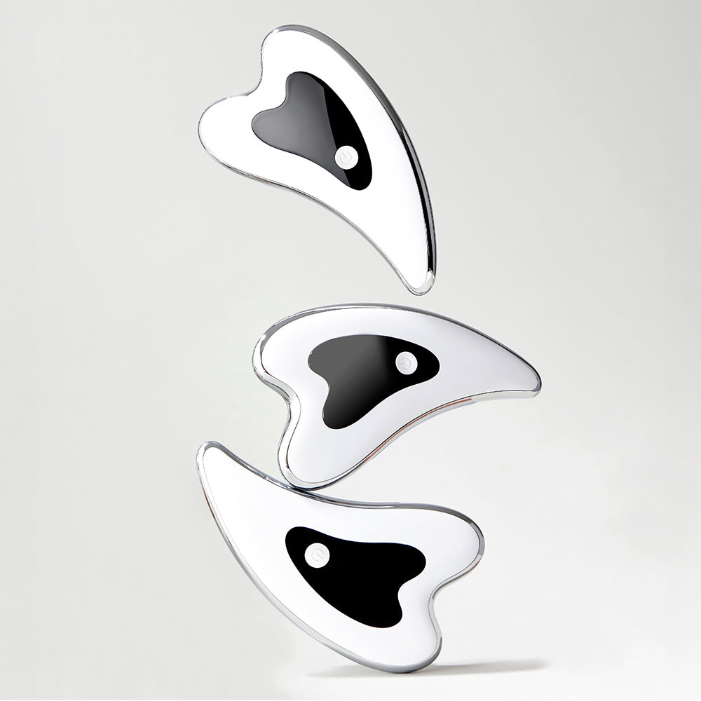 Apply your skincare product evenly over your face. Press and hold the power button for 2–3 seconds to turn on the device. Gently glide it from bottom to top, applying light pressure to relieve muscle tension and lift the skin.