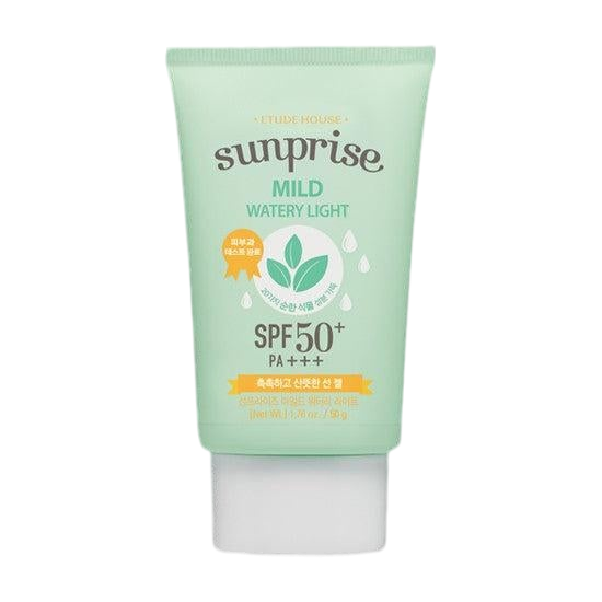 - [Etude House] Sunprise Mild Watery Light Sunscreen SPF50+/PA+++ (50ml): A lightweight, non-greasy sunscreen that offers broad-spectrum protection, keeping your skin safe from harmful UV rays without clogging pores.