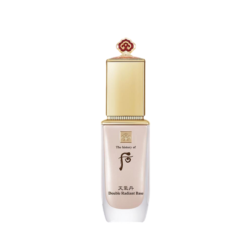 Dopo aver completato la tua routine di cura della pelle e della cura del sole, prendi una quantità appropriata di Cheongidan Double Radiant Base e applicala uniformemente sul viso per un bagliore radioso naturale.